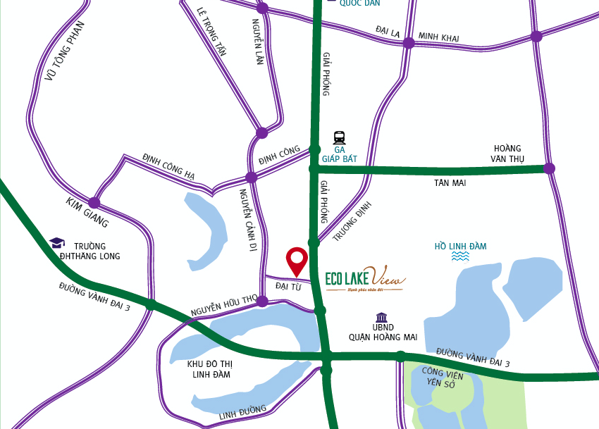 Dự án nằm trên trục đường Đại Từ – TRỤC ĐƯỜNG HUYẾT MẠCH của Thủ đô đang được đầu tư mở rộng với quy mô mặt cắt ngang từ 15 – 20m. Đồng thời, tuyến đường bộ trên cao nối từ Phạm Hùng đến Linh Đàm đang xây dựng giúp giao thông tại Eco Lake Viiew càng thuận tiện hơn bao giờ hết.